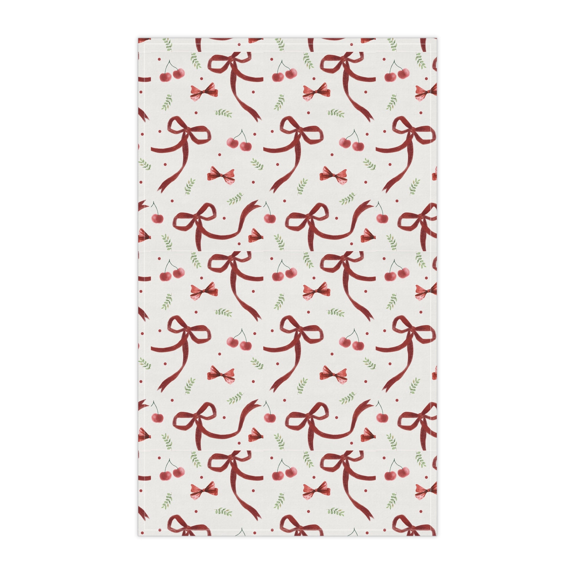 Holiday Ribbon & Holly Tea Towel — Festive Red Bows Kitchen Towel