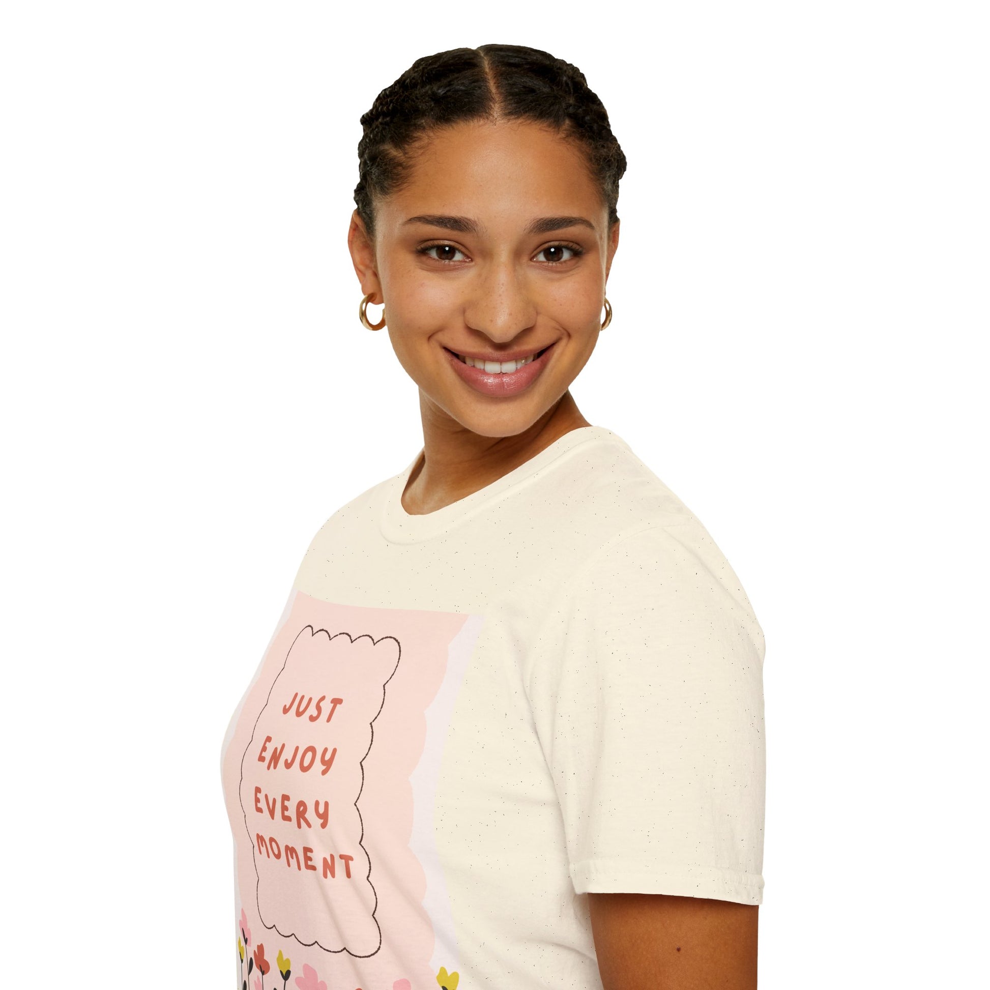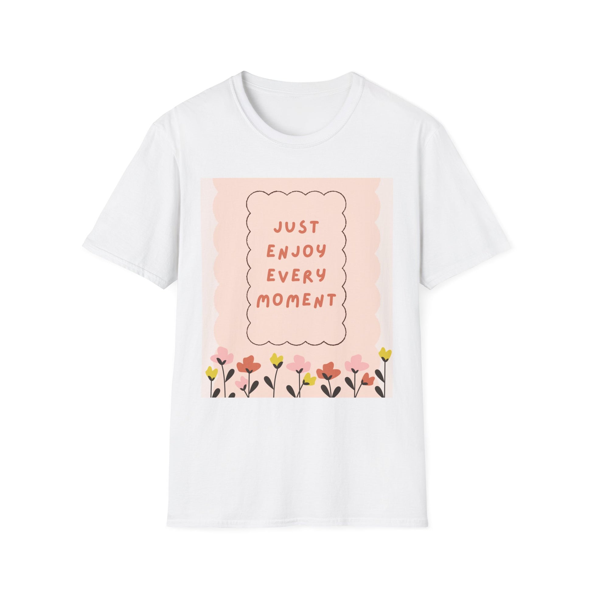 Just Enjoy Every Moment Floral T-Shirt — Inspirational Pink Positivity Tee