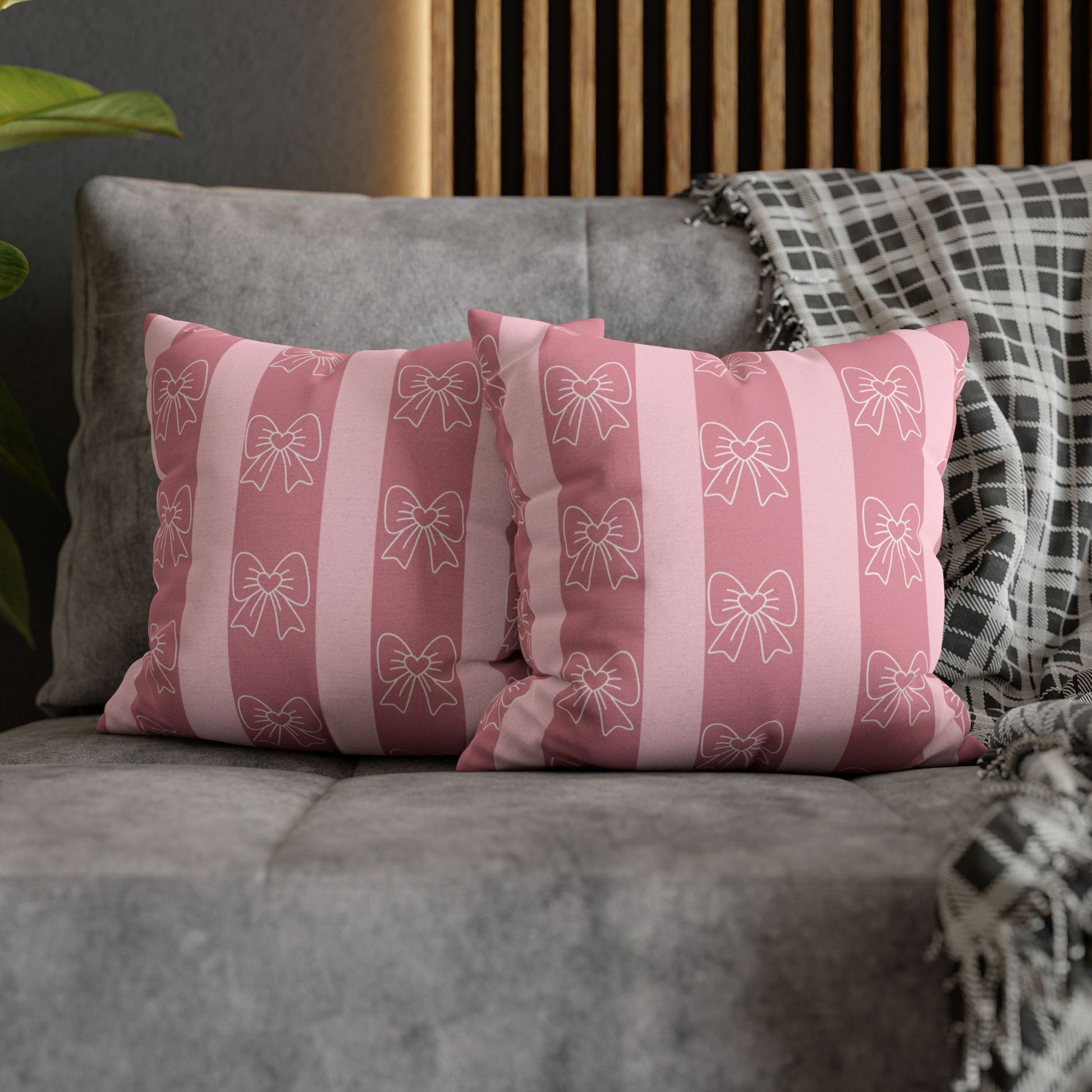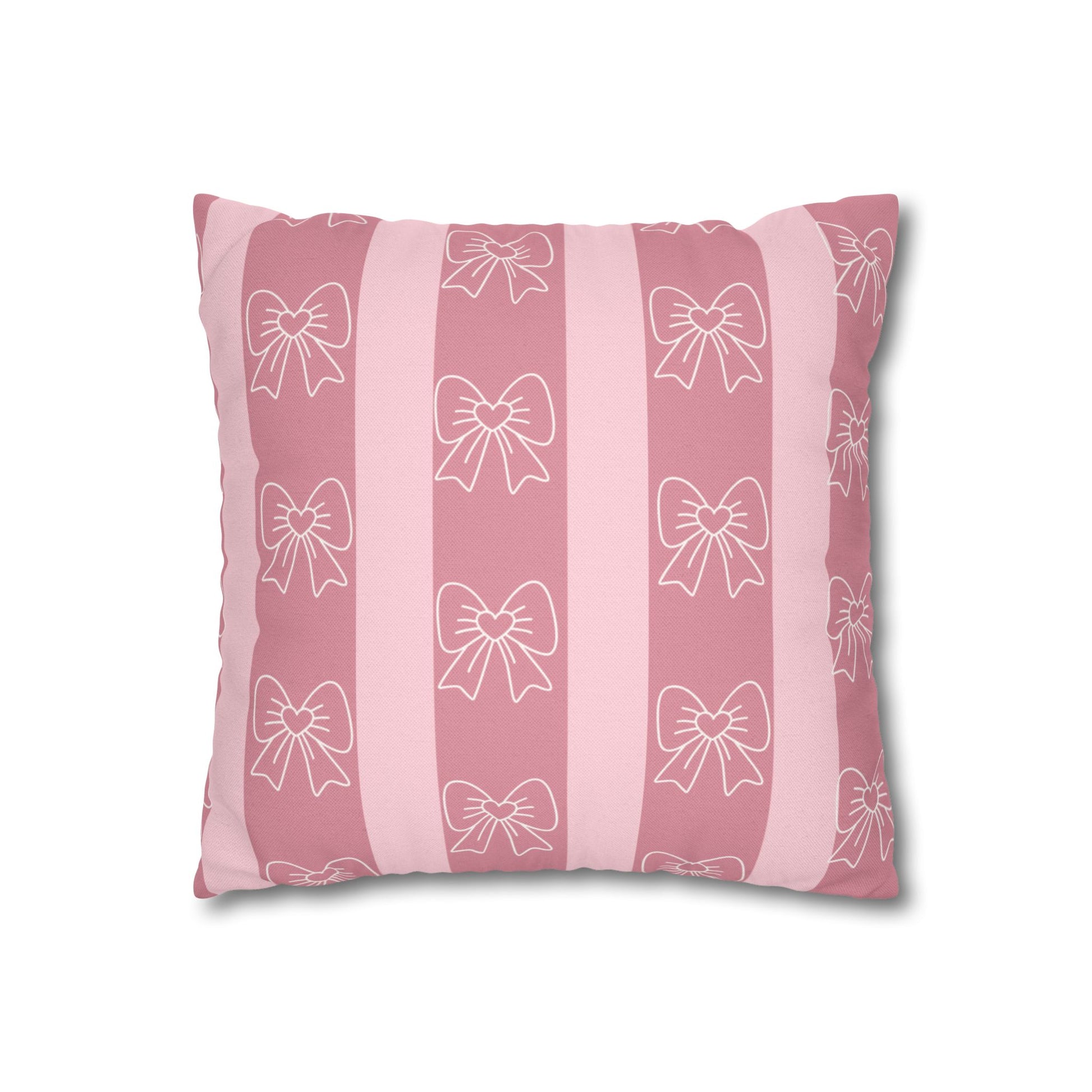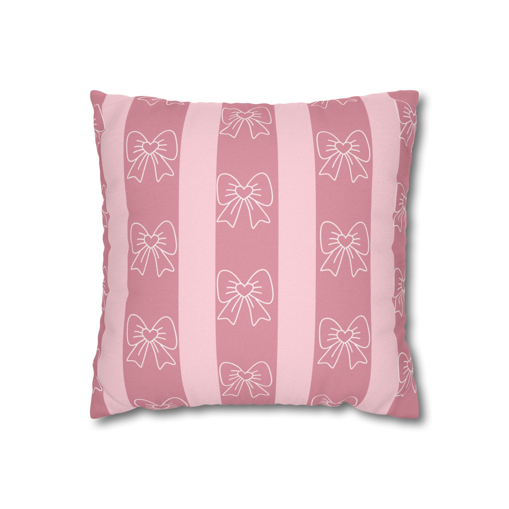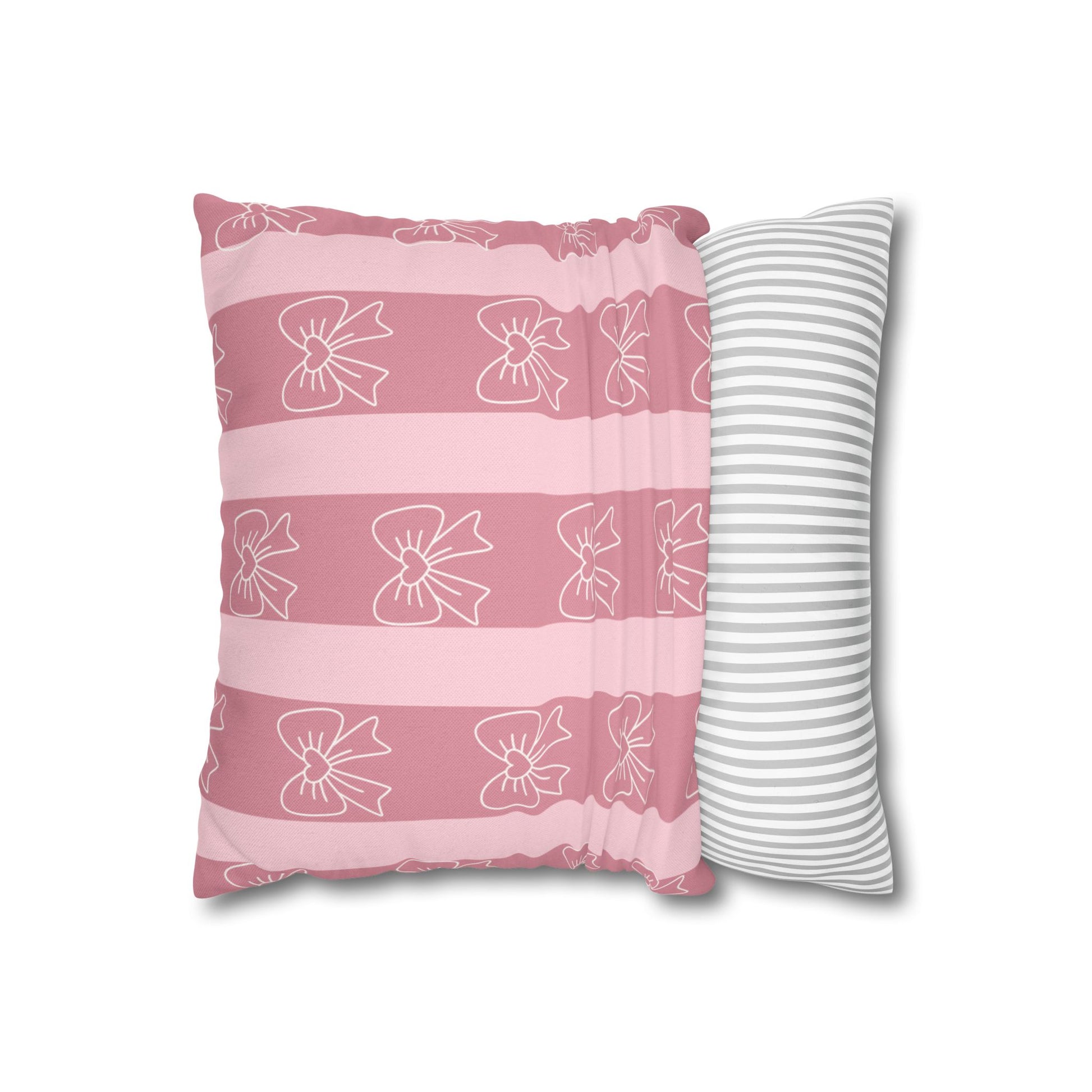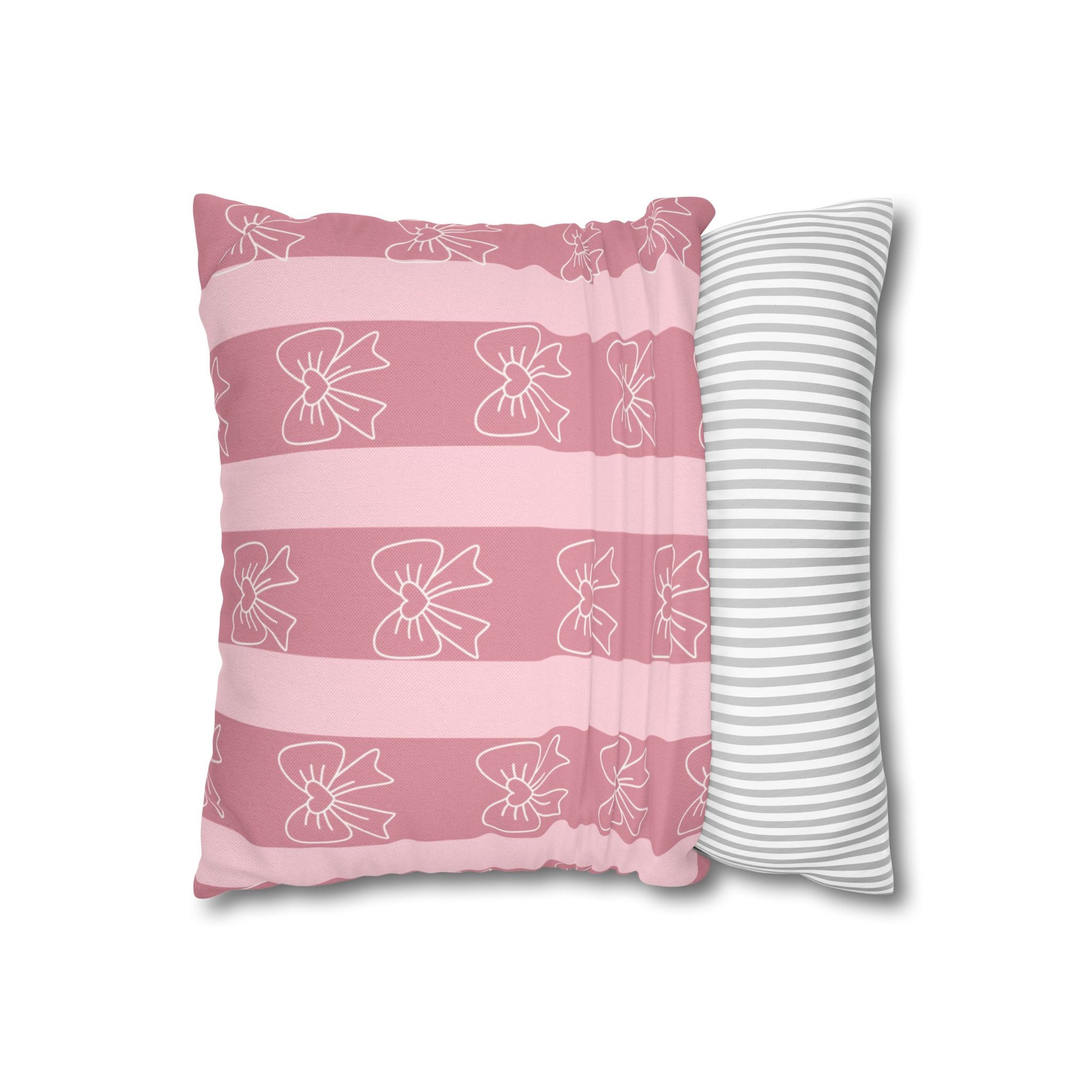 Pink Bow Stripe Pillowcase — Decorative Square Throw Pillow